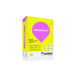 Photo non contractuelle WEBER PRAL F BLANC CASSE 001 25kg ENDUIT FACADE GRAIN FIN ±25kg/m² Réf : WEB050502 En stock Dernière mise à jour le 08/12/2025