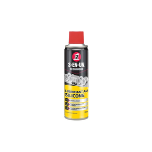 Formulé pour une utilisation sur tous métaux, plastiques, caoutchoucs et vinyles, compatible également avec le bois, le lubrifiant au silicone 3en1 facilite le glissement des pièces en mouvement, évite les frottements et prévient ou supprime les grincements.